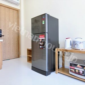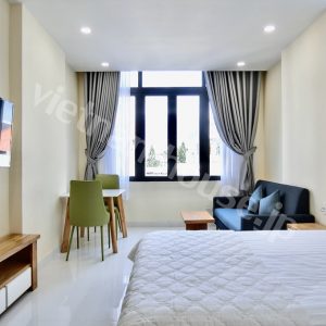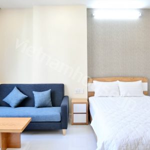 Apartment for rent in Ho Chi Minh City in the district 1. This nice apartment in HCMC has a modern living room, bathroom, kitchen, bedroom, balcony. The apartment is designed, decorated luxuriously and tastefully with high quality furniture. Rental for foreigners or for expatriates.