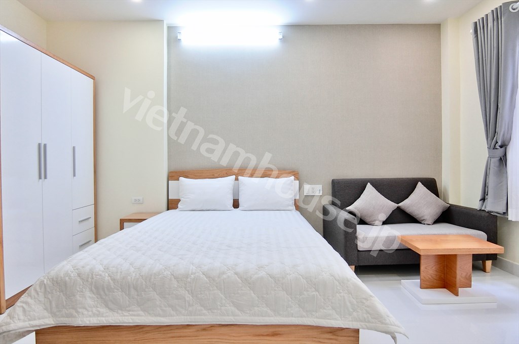 Apartment for rent in Ho Chi Minh City in the district 1. This nice apartment in HCMC has a modern living room, bathroom, kitchen, bedroom, balcony. The apartment is designed, decorated luxuriously and tastefully with high quality furniture. Rental for foreigners or for expatriates.